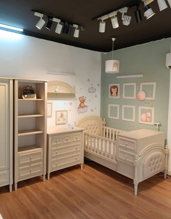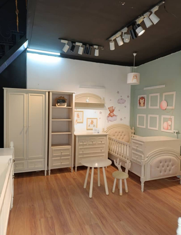 سرویس خواب نوزاد نوجوان دومنظوره چوب وام دی اف رنگ شده مدل رومانتیم