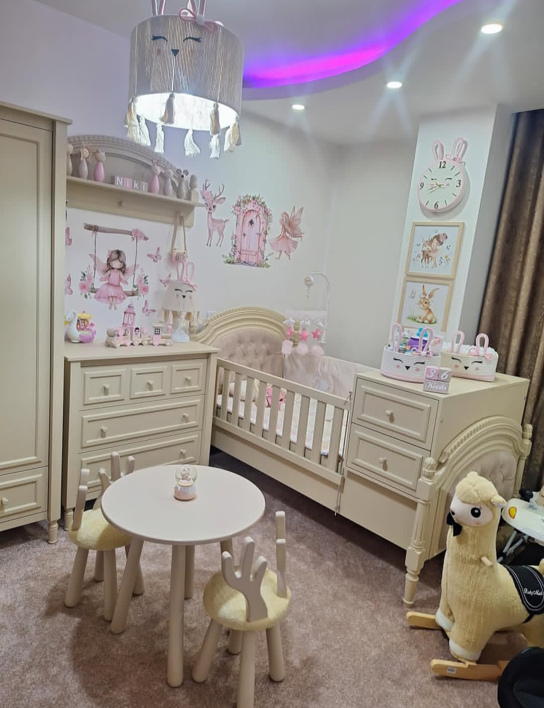 سرویس خواب نوزاد نوجوان دومنظوره چوب وام دی اف رنگ شده مدل رومانتیم