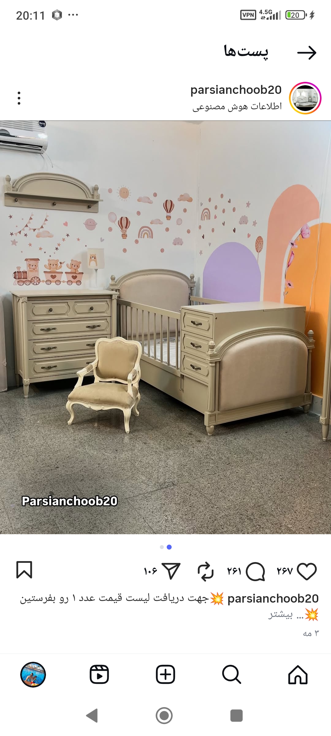 تخت نوزاد نوجوان سایز 180در80 جنس ترکیب چوب و ام دی آف